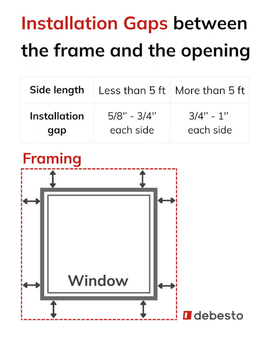 - For window size above 5′ x 5′ prepare a gap of 3/4″ – 1″ on each side