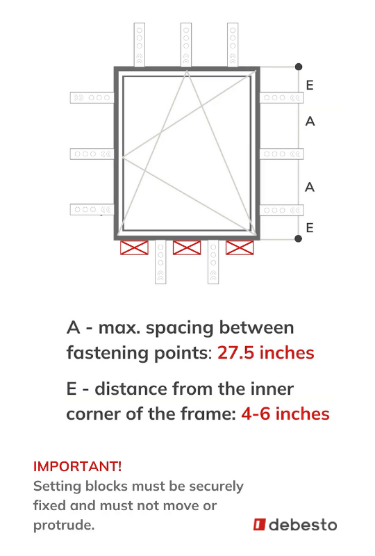 There are two ways to level the window at the bottom: with or without support blocks.