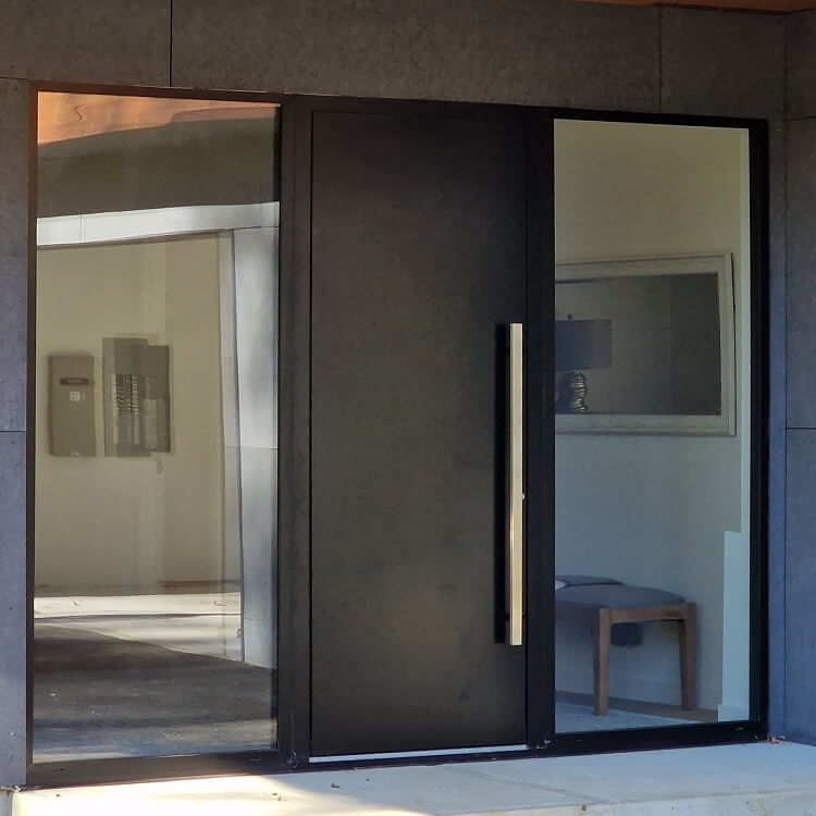 For the 12-foot wide patio doors with a large glazing surface, we recommended the aluminum lift and slide patio doors Aluprof MB-77HS. This system has a modern look and also provides long-lasting use. For you, it means no servicing and increased confidence in your company.
