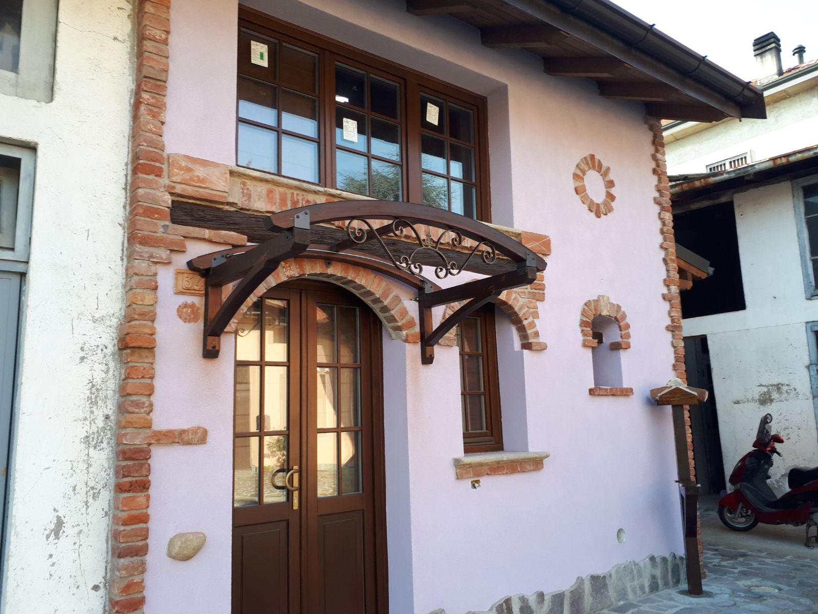 - We delivered a set of wooden windows (68 mm profiles) and a pair of double-wing doors made from solid pine hazel-coloured wood to Italy.