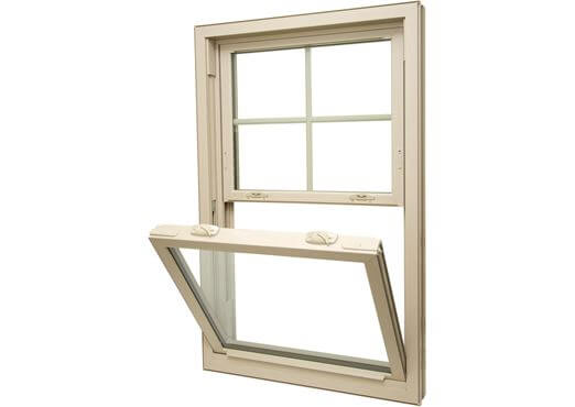 Okno z pojedynczym zawieszeniem ma dwa skrzydła, ale zazwyczaj skrzydło górne jest zamocowane, a przesuwane tylko skrzydło dolne.